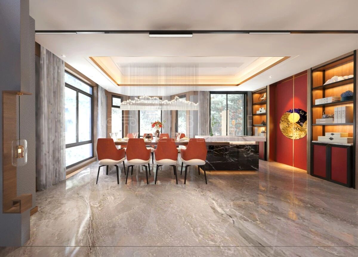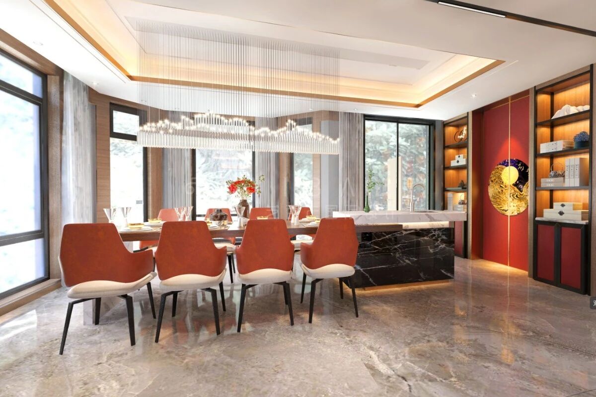 一楼整体规划为客餐厅与书房,玄关将一楼的空间自然的分成客厅区域与就餐区。而精心打造的入户花园让人还未入室,已闻花香,无论是好友相聚还是日常起居,都赋予生活满满的幸福感。