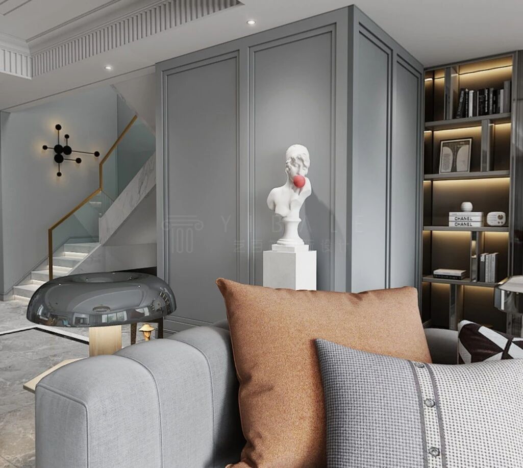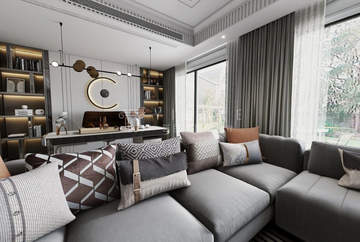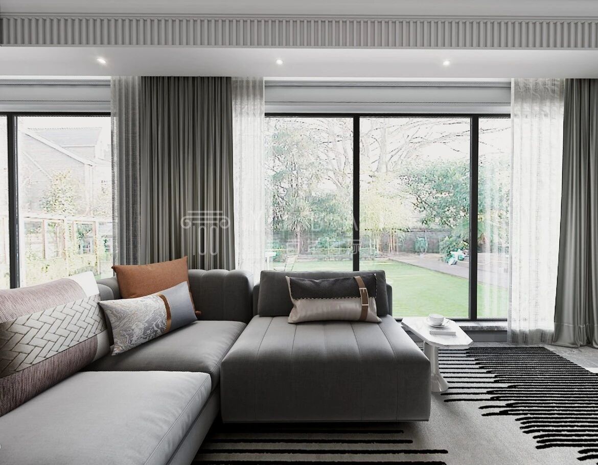 原始户型采光通风较好,本案根据自然采光与行走动向,做出调整。将一楼茶室与客厅的隔断拆除,形成一个开放式的空间。由于二楼的过道较长,空间利用率不高,设计师将空间重新规划后,形成两间卧室+一间起居室的形式。