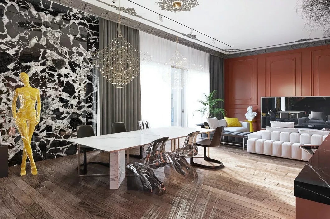 再加上用材前卫艺术的装饰点缀,整个空间每一处无不在彰显着主人的不凡品位。