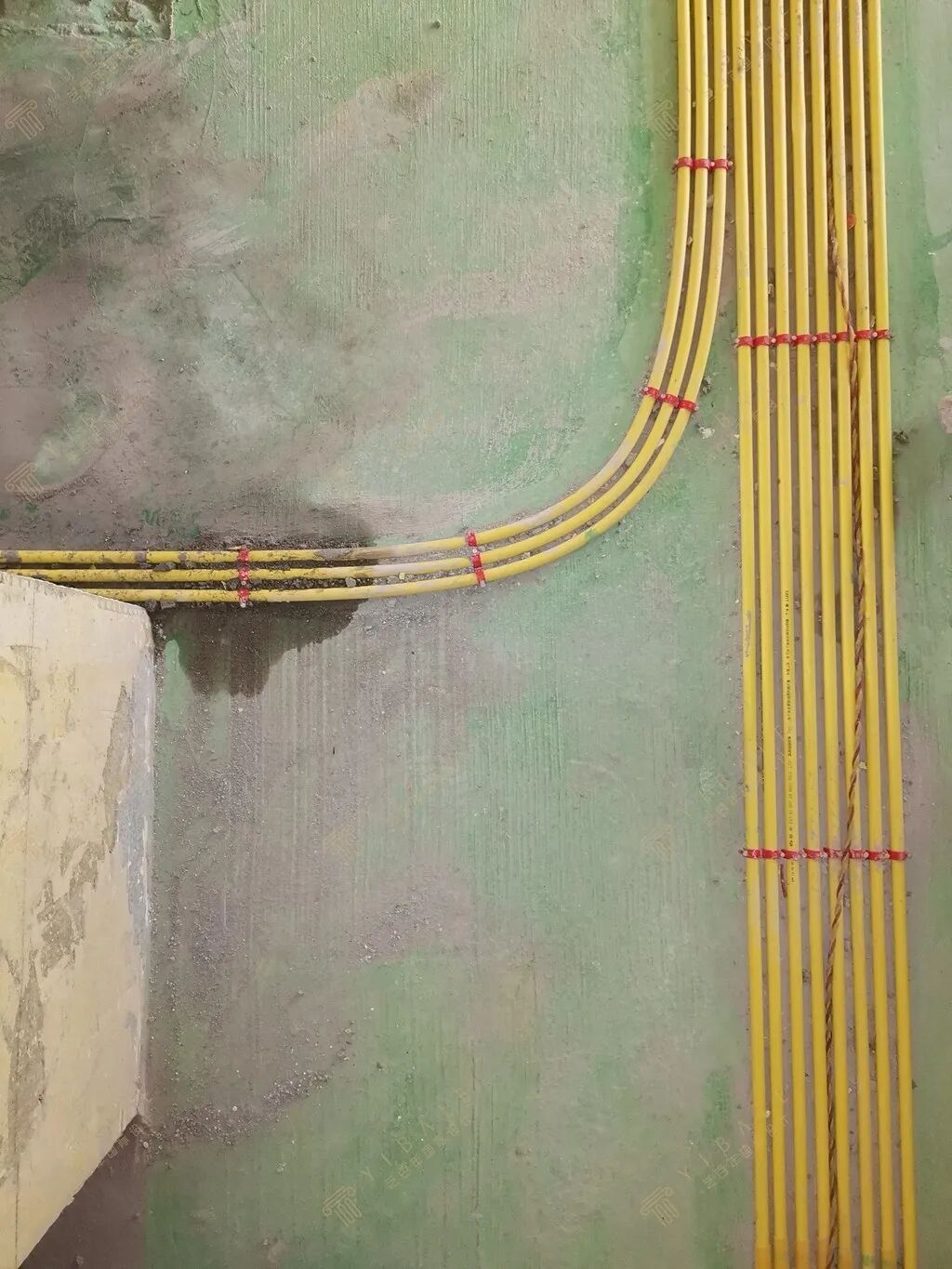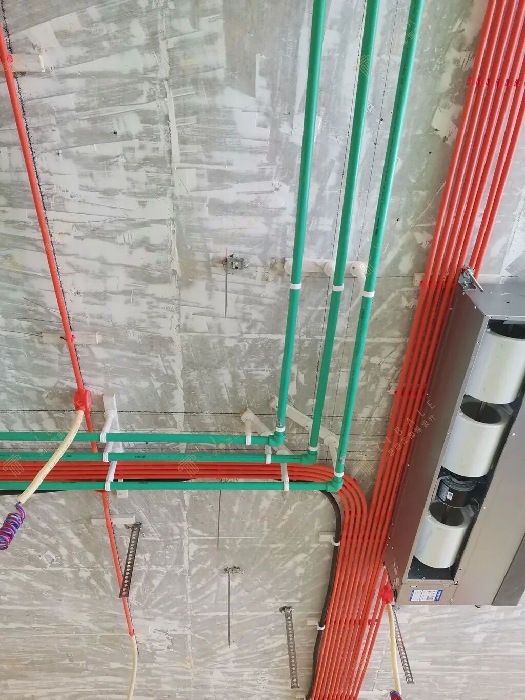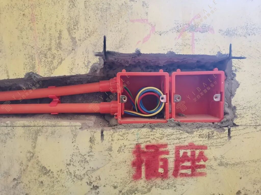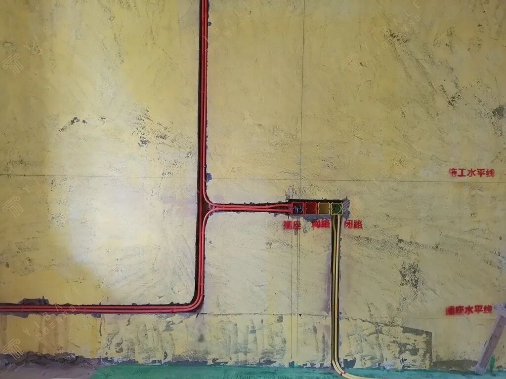 墙面强电线管排布,强电施工主要针对插座以及灯线开关的规划,采用红色线管进行布设。不仅美观要做好,工艺也要追求完美。