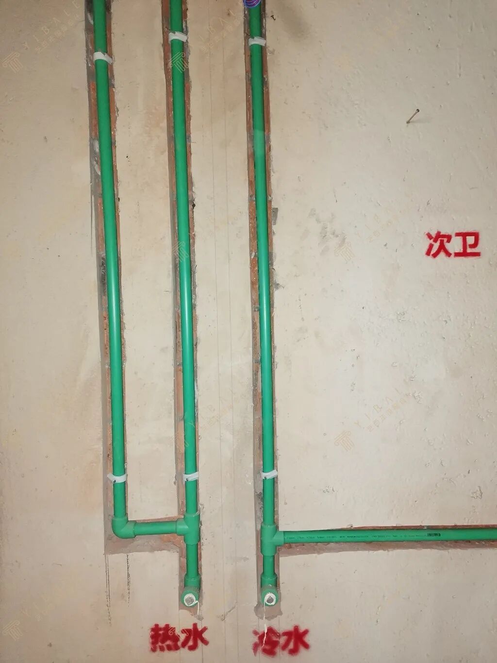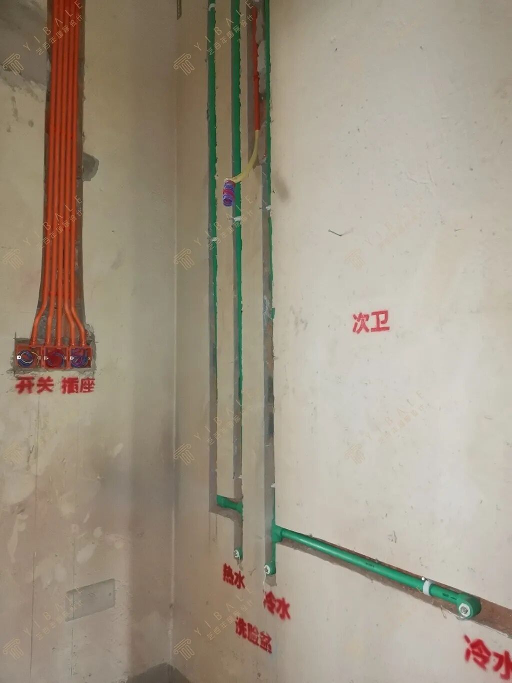 ▲水管采用单槽单管,并标明冷热水管与洗脸盆位置,以便后续施工顺利有效的进行。